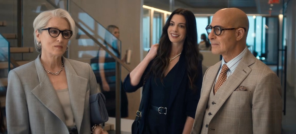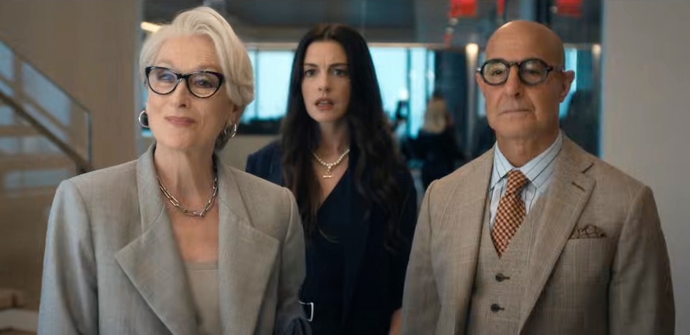 Meryl Streep, Anne Hathaway and Stanley Tucci appear in a scene from the movie "The Devil Wears Prada 2."