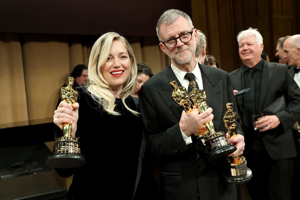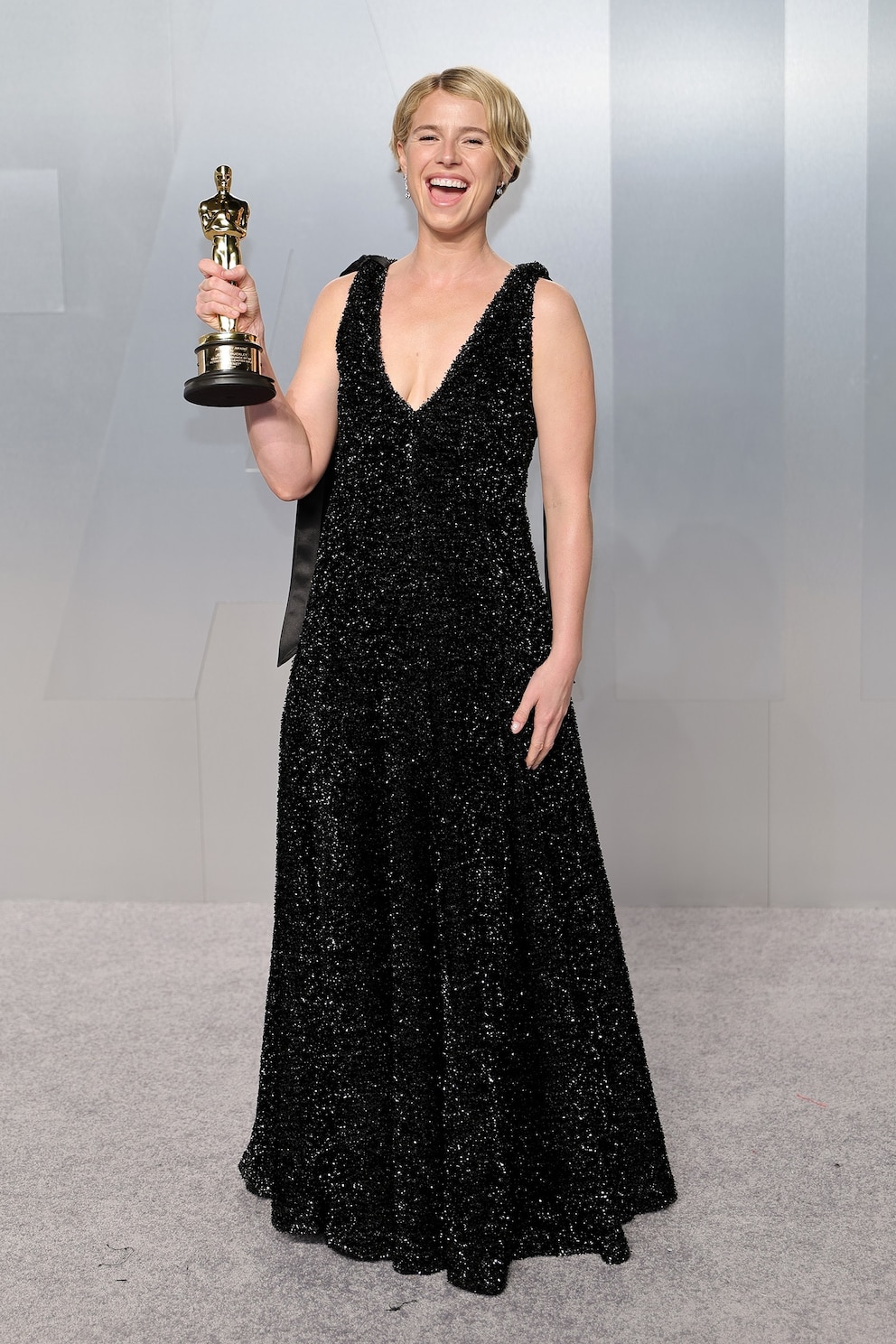 "Hamnet" star and best actress winner Jessie Buckley, meanwhile, changed from her vibrant pink Chanel ceremony dress into a shimmering black A-line gown to hit the Vanity Fair party.