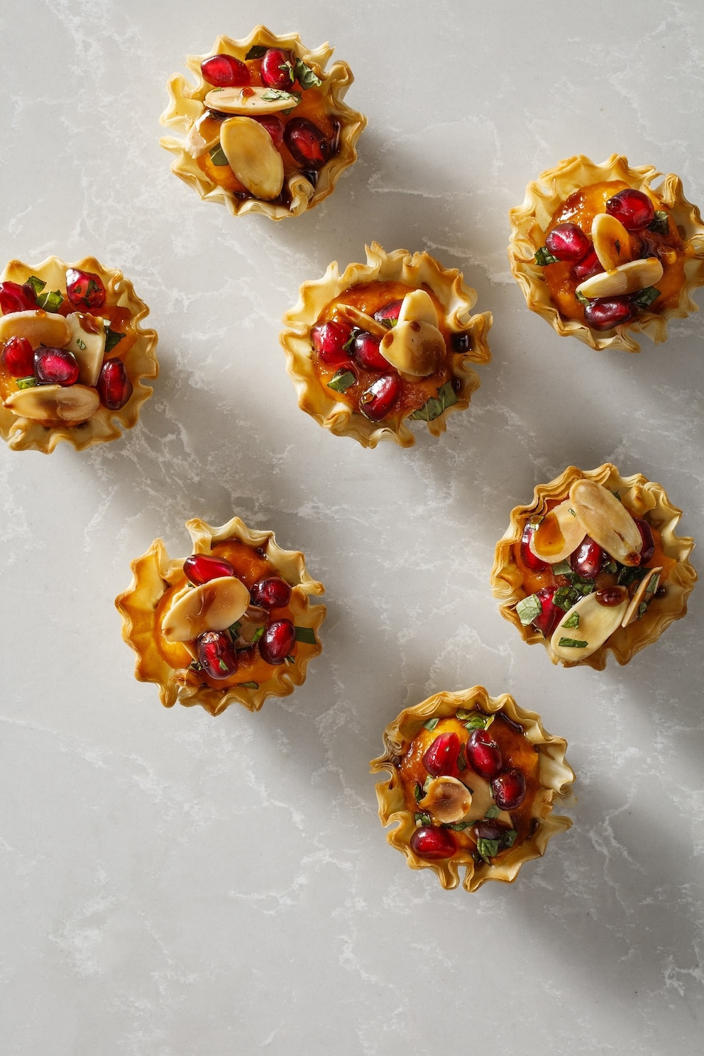 Butternut Squash Tartlets with Almonds, Pomegranate, and Mint