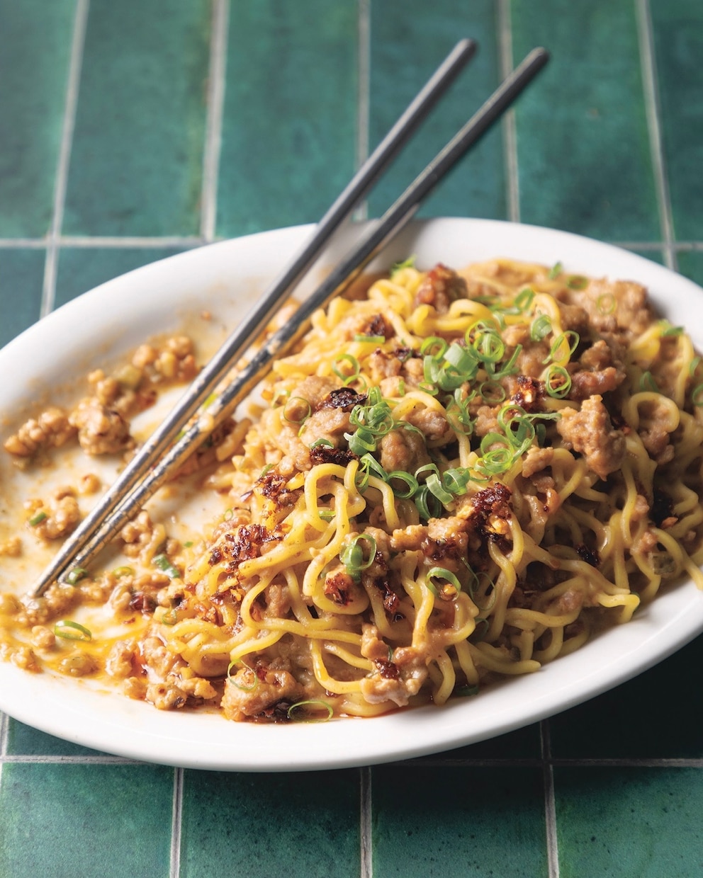 Stir the dan dan sauce into the noodles, adding some of the reserved hot water as needed until a loose, smooth sauce forms that coats the noodles.