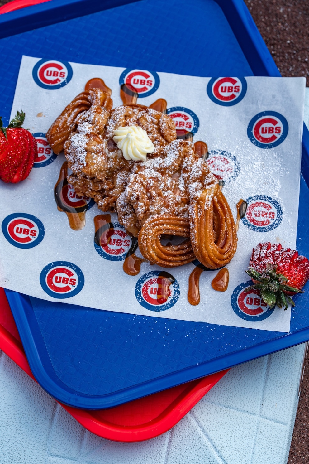 Wrigley Field and Levy have three tasty new savory dishes including Chicken & Churros -- a riff on chicken and waffles -- fried chicken thighs served with fresh churros, ancho syrup and fresh strawberries; the Bao Wow Dog, a chargrilled Vienna Beef hot dog inside a soft bao bun with mustard slaw and crispy tempura sport peppers; the Tostada Stack, a crispy layered tostada with Hatch green chili beef, refried beans, queso fresco, fresh Pico de Gallo and crema, topped with a fried egg.