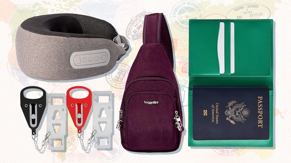 Other items like a hands-free cupholder and family passport holder can help you stay organized to streamline your journey, while you can feel more secure with slash-proof sling bags, extra door locks for your hotel and more.