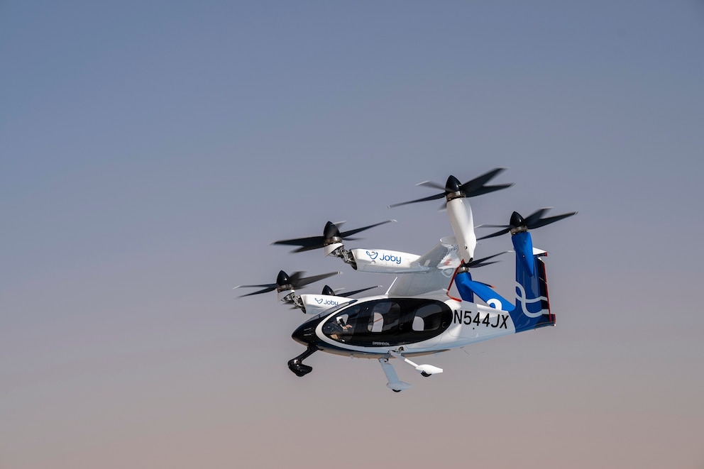 Joby's pilot-flown, four-passenger aircraft are designed for vertical takeoff and landing (eVTOL), which operates from a small rooftop or purpose-built pads, rather than traditional airports.