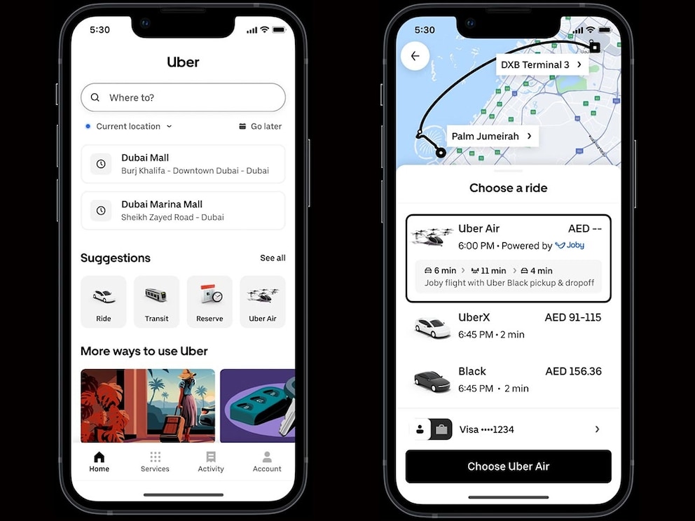 Once selected, the app books the entire multimodal trip, including an Uber Black car to the vertiport, the Joby air taxi flight, and another Uber pickup at the destination, according to Uber.